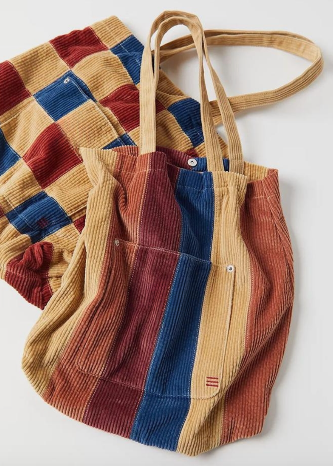 Bring timeless style to your everyday carry with this Corduroy Stripe Tote Bag. Featuring a retro-inspired design with multi-colored stripes in warm browns and cool blues, it combines classic charm with versatile color tones. Crafted from durable corduroy, this tote offers a soft texture and reliable strength for daily use. Perfect for errands or casual outings, its spacious interior accommodates all your essentials with ease — embrace vintage flair while supplies last.