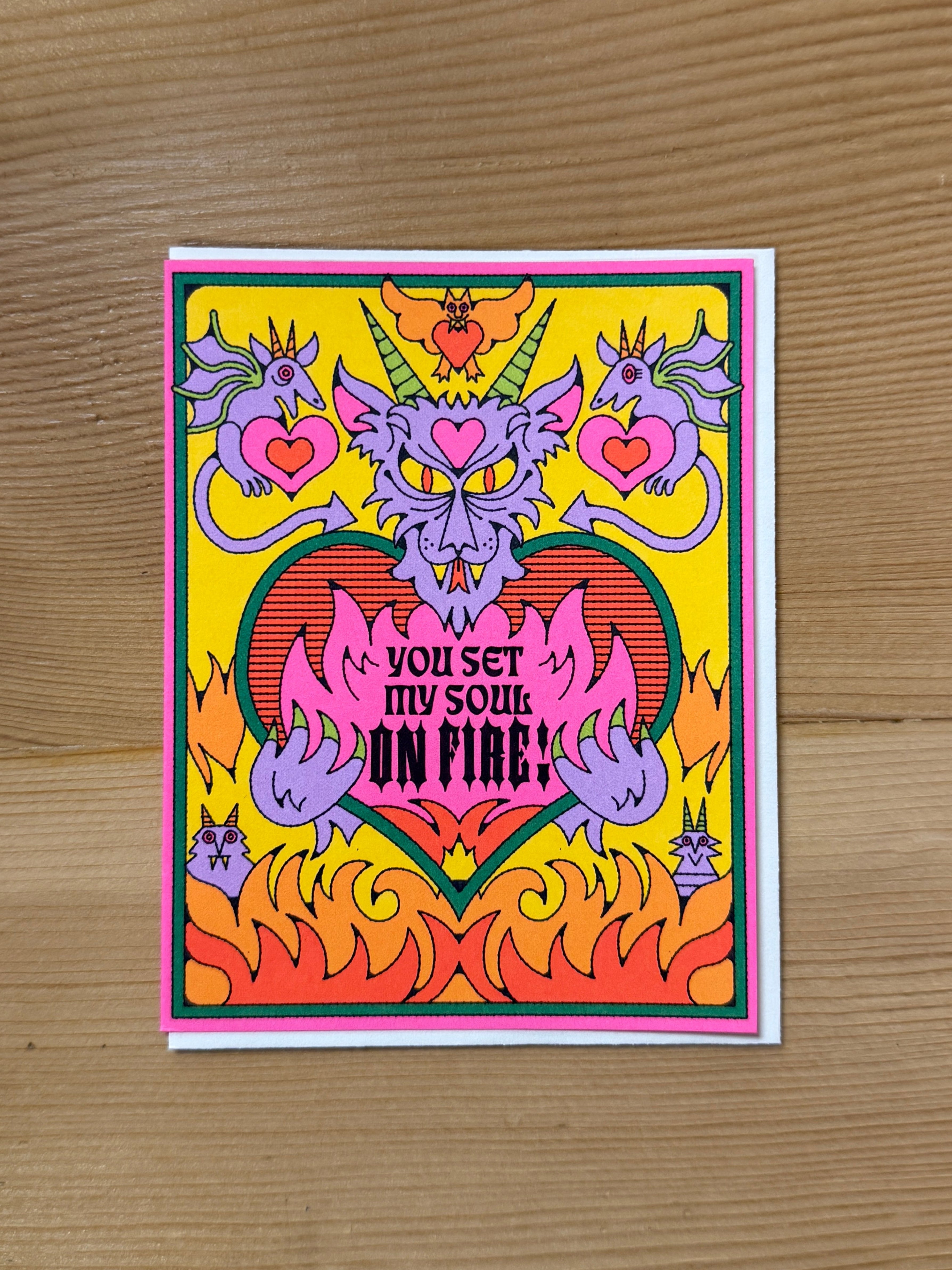 Ignite the spark with this fiery Dragon Love greeting card! Bursting with vibrant hues and bold imagery, it captures the heat of passion in playful style. Perfect for expressing your most intense feelings—whether it's romance, admiration, or pure excitement. Let your emotions soar! A card as unforgettable as the love it celebrates. Blank interior to write your personal message.