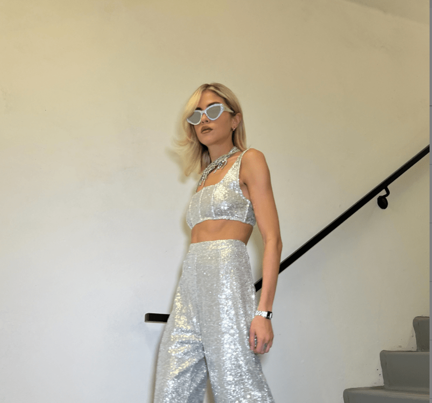 The Sequin Micro Top delivers an eye-catching statement look with its standout sequin fabrication. The bralette style perfectly complements any evening look, and is sure to make a lasting impression with its signature disco vibes.