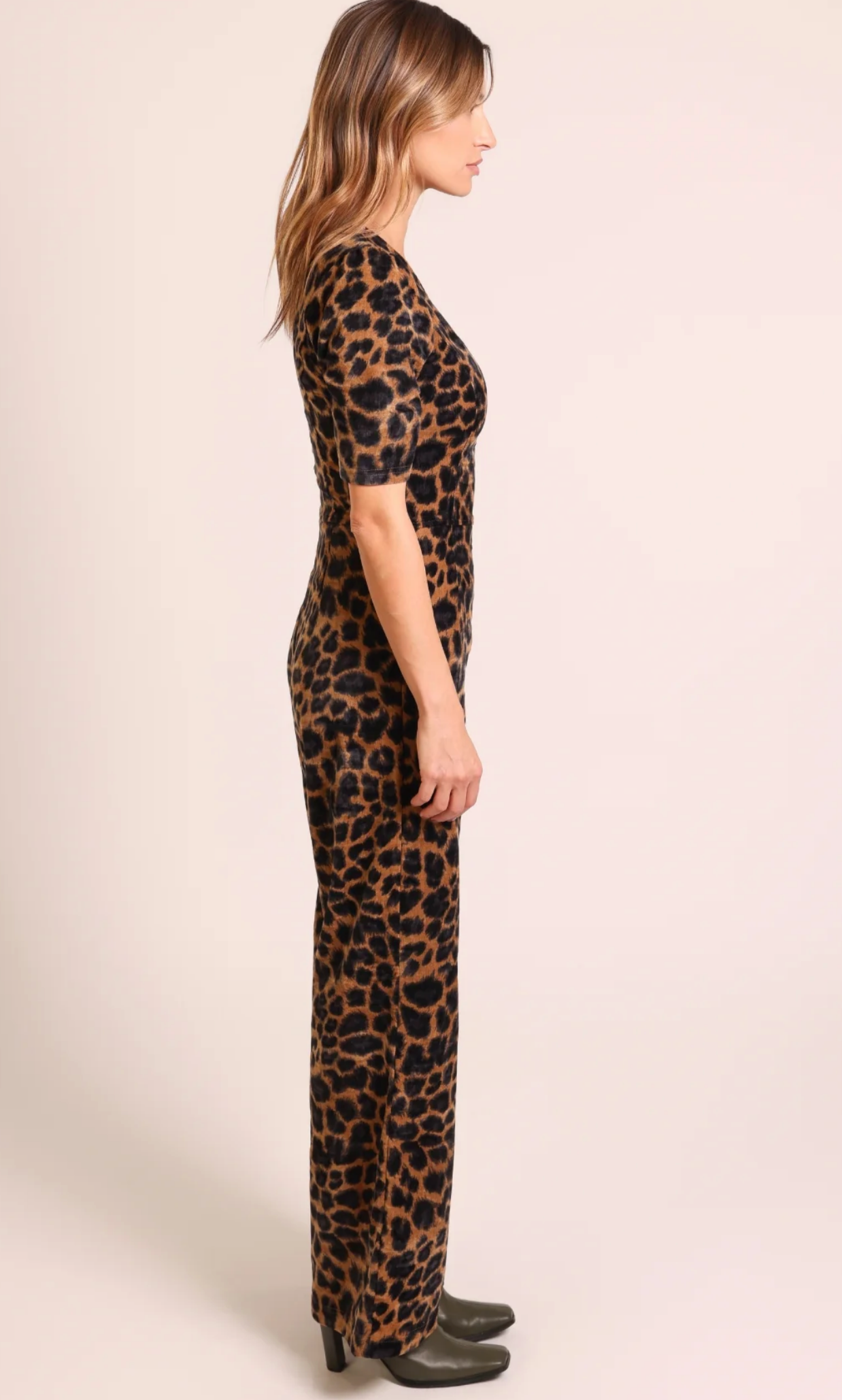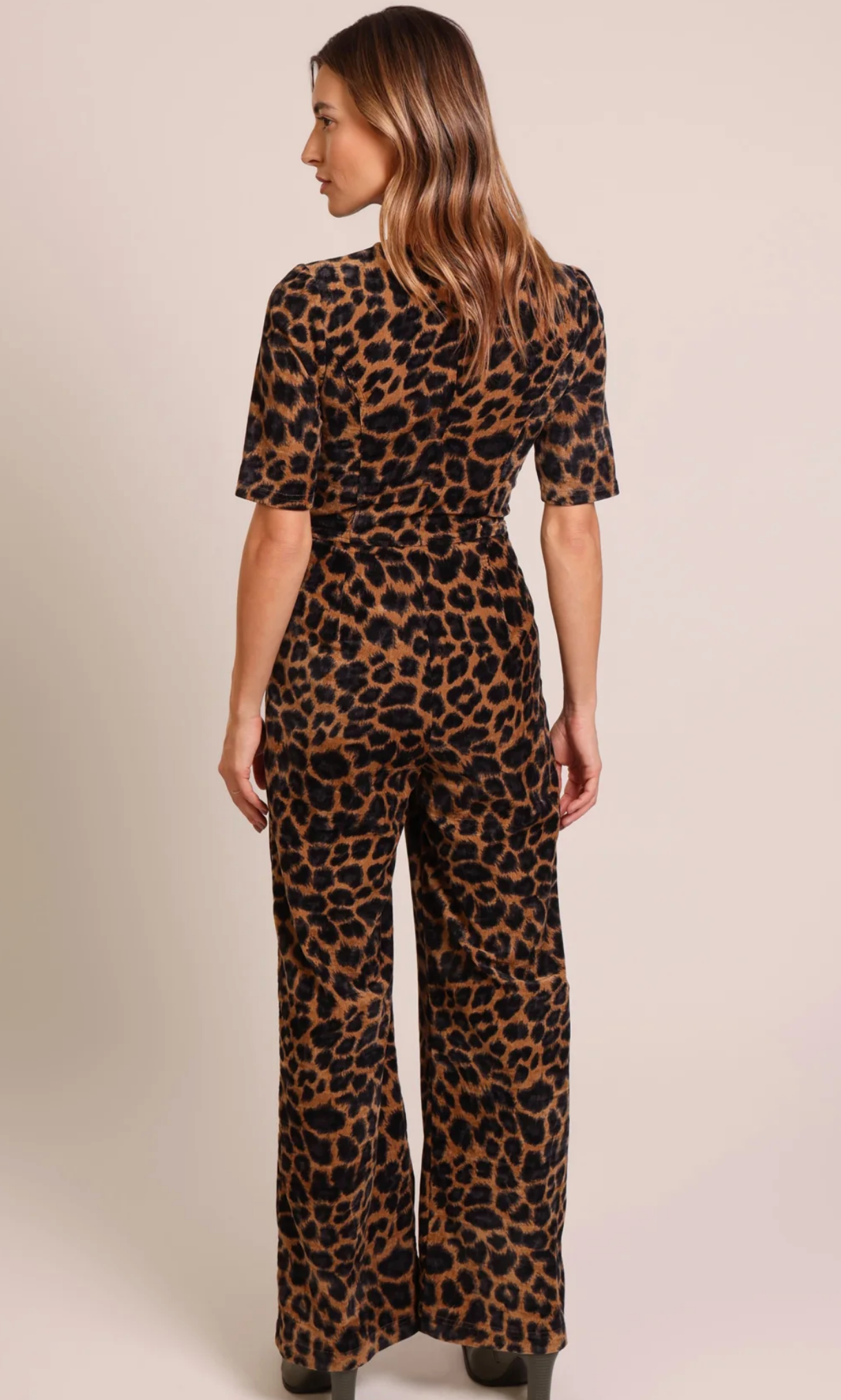 The Clan Leopard Print Jumpsuit features a form-fitting silhouette that flatters your figure with a sleek, slightly flared leg for effortless style. Its striking brown and black leopard print adds bold, retro confident flair to your wardrobe, perfect for making a statement at any occasion.