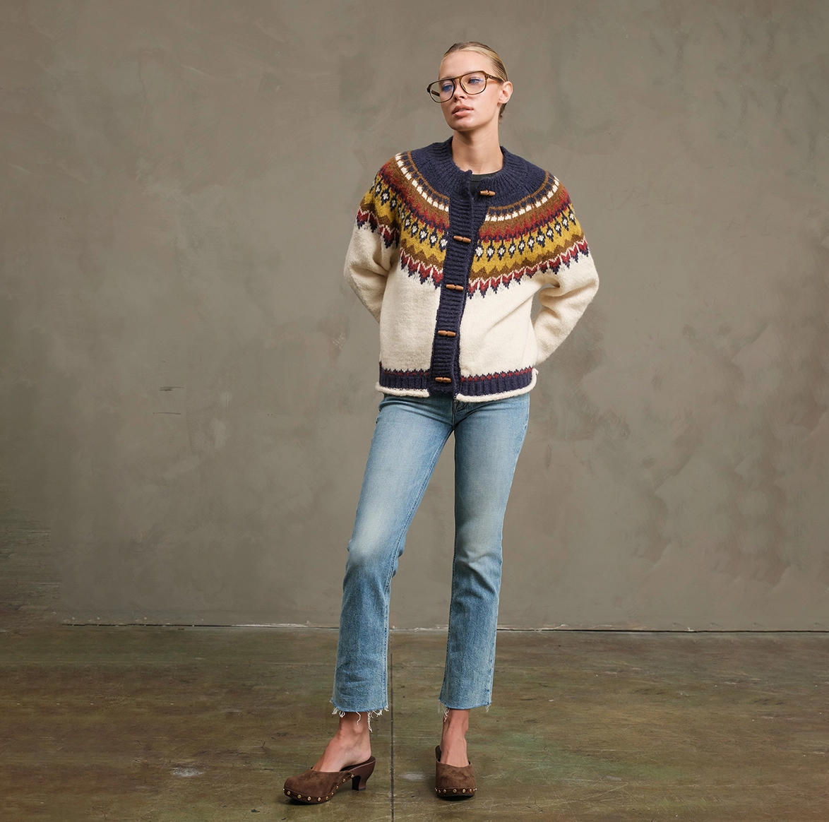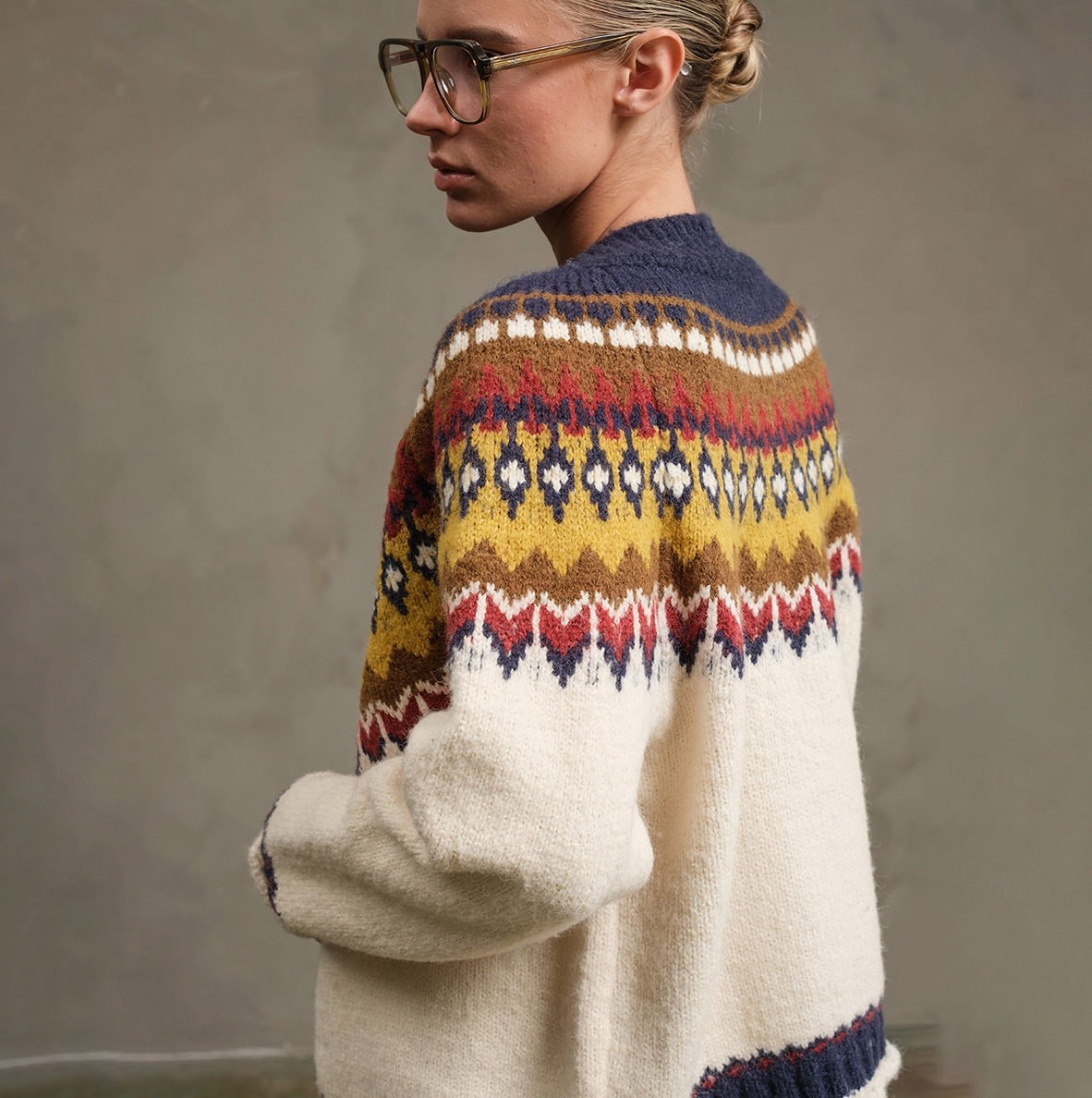 Embrace classic style with this cream and navy knit cardigan, featuring a traditional Nordic yoke pattern that adds timeless charm. Designed as a wardrobe essential with a vintage twist, it’s finished with front wooden toggle buttons for both functionality and rustic appeal. Perfect for layering, this cardigan blends heritage-inspired details with everyday comfort to elevate your look effortlessly.