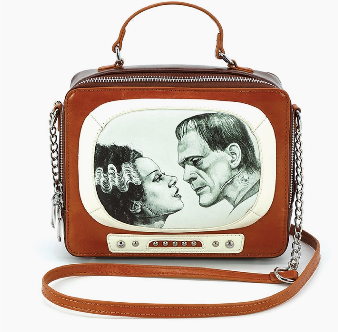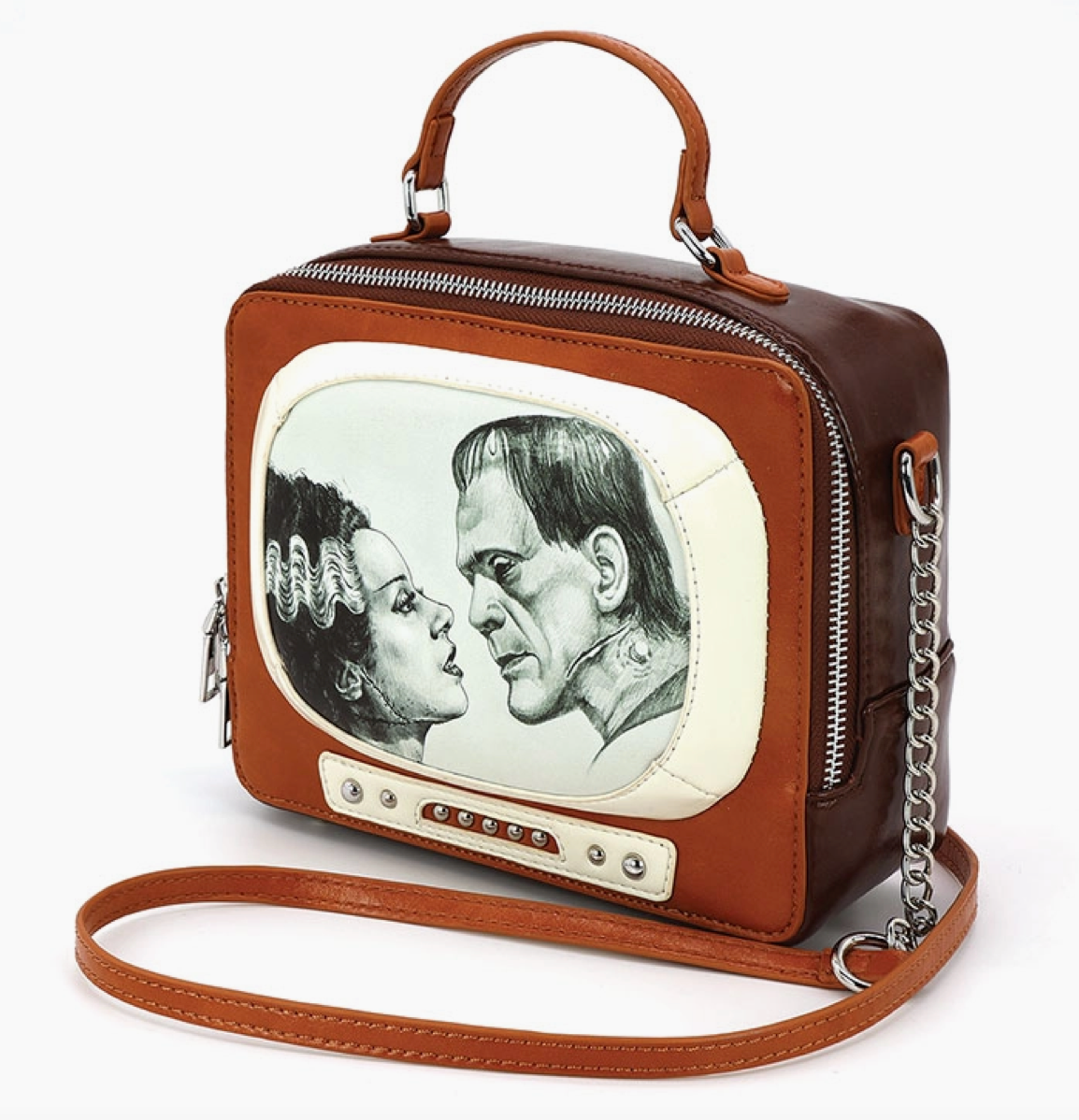 This unique brown purse stands out with its glow-in-the-dark feature, adding a spooky twist to a classic design. Equipped with both a crossbody strap and a top handle, it offers versatile carrying options for comfort and style. Perfect for fans of eerie elegance, this bag merges practical functionality with a distinctive, haunted charm.