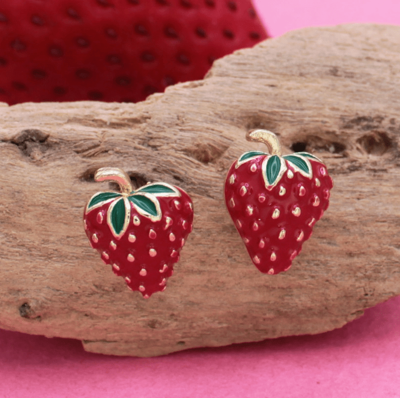 Add a fruity touch of fun to your summer look with these Red Strawberry Post Earrings! Accented with gold trimmings, these playful earrings are sure to make a statement. (They're berry cute!)