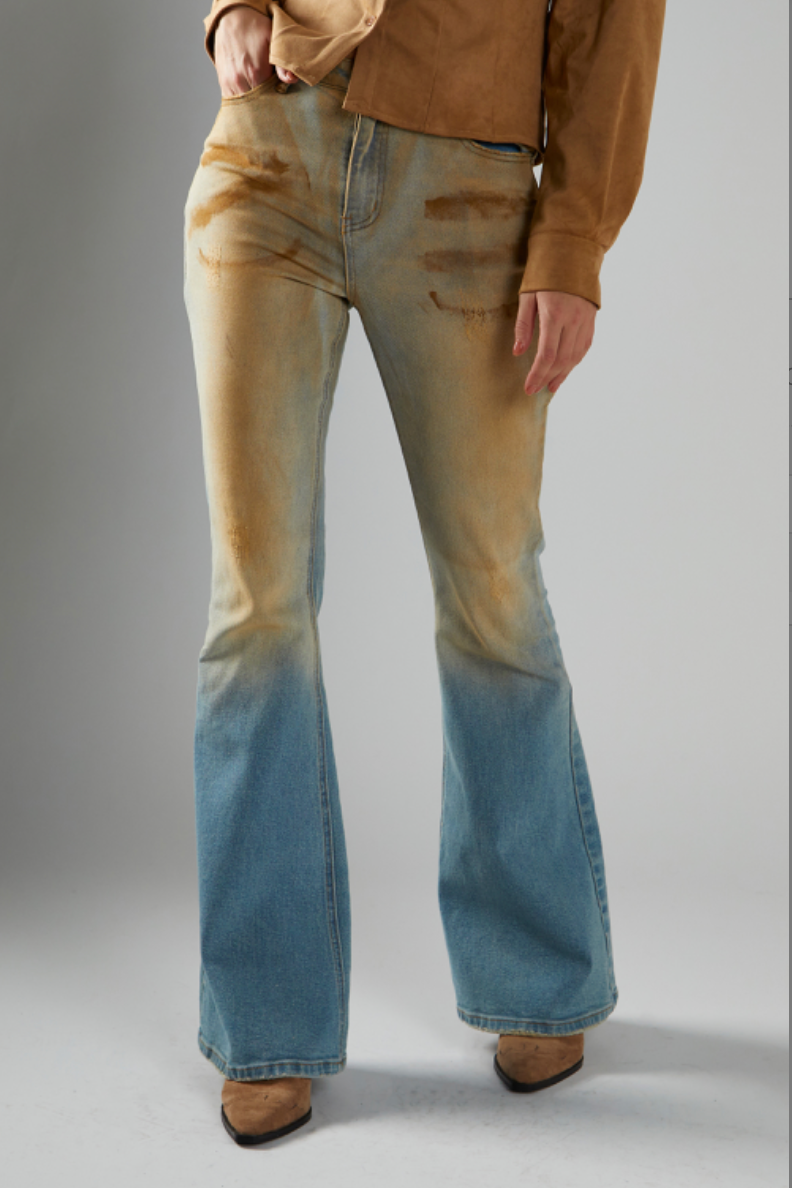 These Blue Mud Wash Denim Pants feature a vintage blue hue and a flattering boot cut silhouette that enhances your shape. The mid-rise design offers comfortable coverage, while the unique mud wash pattern adds cool, unexpected character—each pair varies slightly for a one-of-a-kind look. Perfect for effortless style with a modern edge.