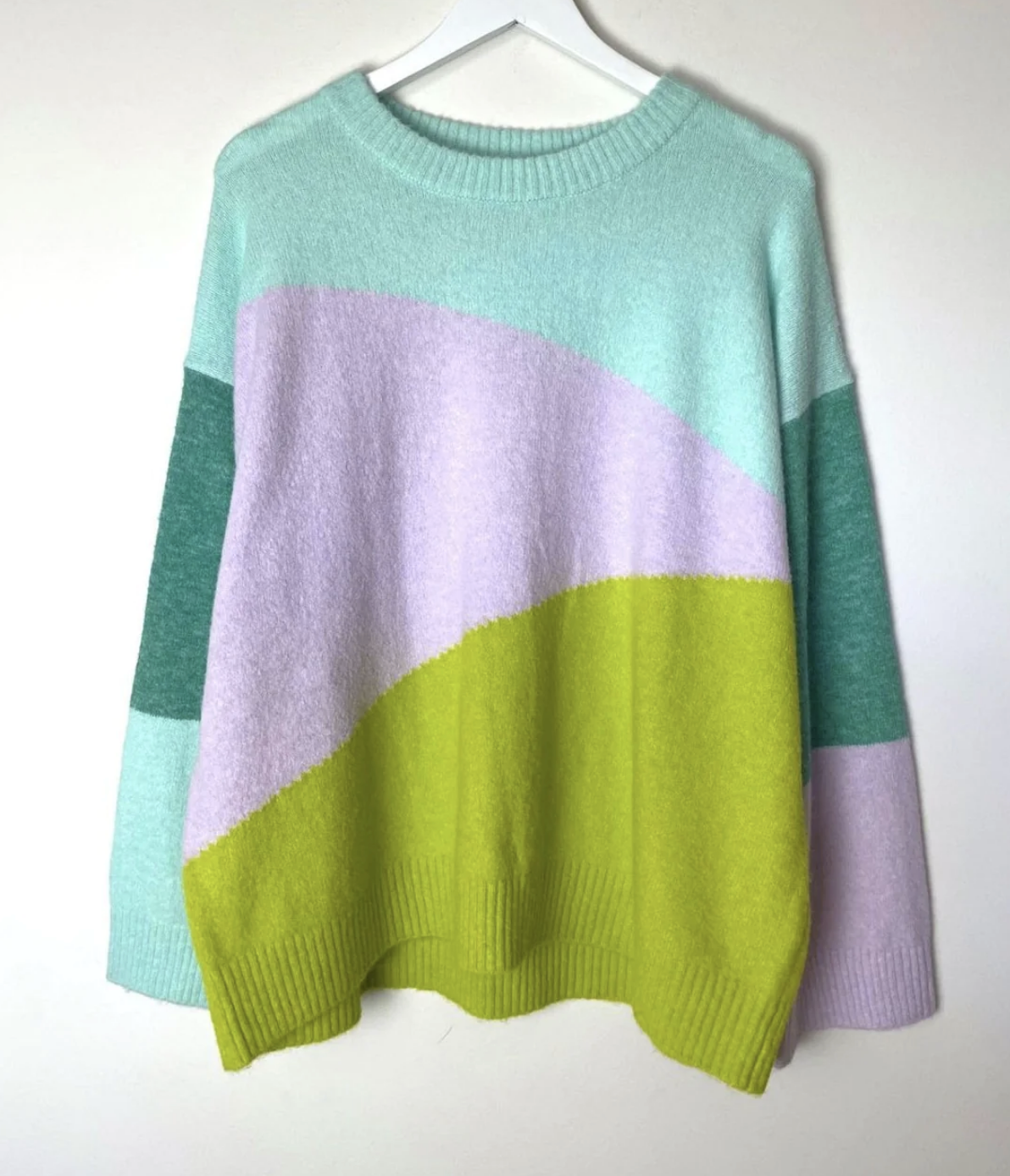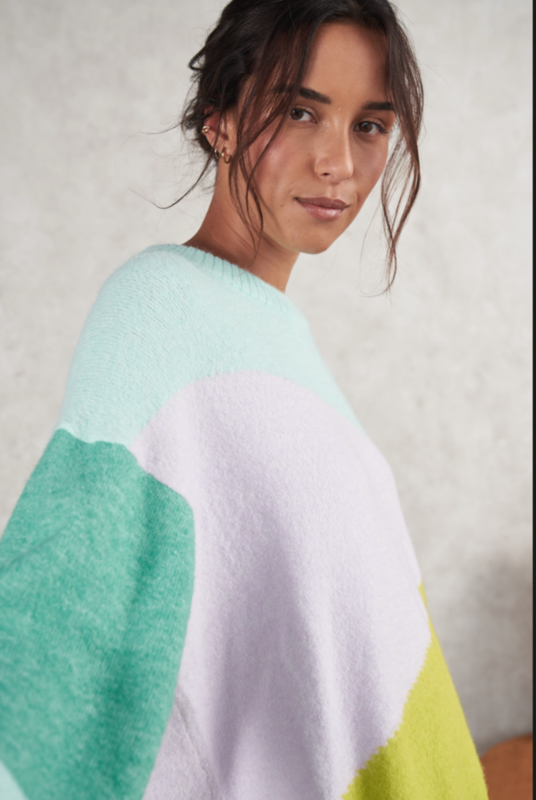 Stay ahead of the fashion curve with the stylish Sophia Sweater! This cozy top has all the colors you need to keep your style on-point with a gorgeous lime green, aqua blue, light blue, and lavender. Plus, the abstract print and wide sleeves give this oversized sweater an extra fashionable flair! So stay warm and look cool in the Sophia Sweater, perfect for any occasion!